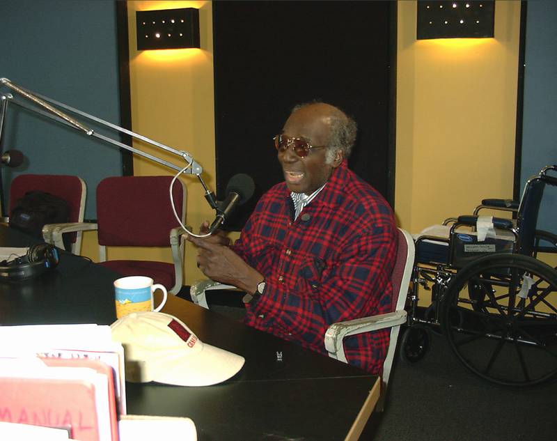 Shooby shares the secrets of his craft with WFMU listeners Photo © Irwin Chusid 2002
